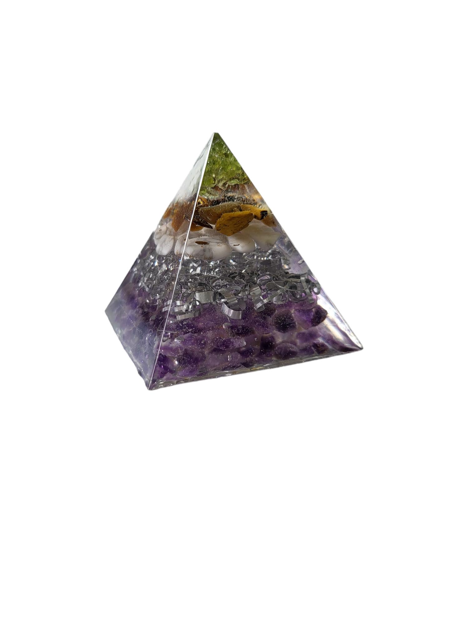 Geeft bescherming tegen negatieve stralingen uit bronnen zoals routers, computers en telefoons. Reinigt je chakra’s en aura en brengt ze weer in balans. Een Orgonite kan helpen tegen slapeloosheid en nachtmerries en hij versterkt de werking van de aanwezige edelstenen.